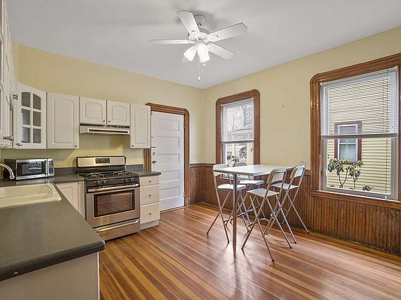 Spacious first and second floor Philly duplex unit with master bedroom/bath and garage parking included! Two full bathrooms and two bedrooms, plus third office area that could possibly be used as a 3rd bedroom. Large living room with bow window and working fireplace. Beautiful, spacious dining room, plus eat in kitchen. Laundry exclusive for this unit. Back yard and patio are shared spaces with the owners upstairs. Pet friendly! Truly a beautiful building just steps to the Shawmut T Station. If you're looking for quality of life, enjoy being neighbors with thoughtful owner occupants who take fantastic care of this lovely home!