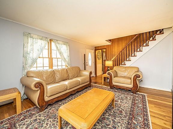 You will fall in love with the charm of this typical New England Cape style home. Hardwood floors carry throughout the home. Entertaining is easy with the open feel of the dining room and kitchen. The fully applianced and updated kitchen features granite counters, some updated cabinets, a unique backsplash and a breakfast nook that opens to the separate, formal dining room. The kitchen also leads to the spacious and bright family room that features a cathedral, beamed ceiling, a beautiful brick raised hearth fireplace, wainscoting and 2 closets. Access to the back deck from the family room allows you to enjoy the outdoor living space and private backyard. A nice sized living room, first floor bedroom and full bath complete the first floor. The second floor features 2 large bedrooms with plenty of closet and storage space. A separate two car garage is nicely situated on this lot. Don't miss out and come view this lovely property.