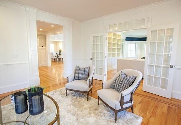 Stunning newer Bates School residence offers 7,500+ sq. ft. of spectacularly finished living space reflecting recent renovations and meticulous attention to detail. Sun-filled gracious foyer opens to fireplaced living room and dining room. Sunny library with custom built-ins and fireplace. Pristine chef's kitchen with island seating opens to adjoining fireplaced family room with built-ins and fabulous wall of windows overlooking spectacular patio with stone sitting walls, built-in outdoor kitchen and beautifully landscaped private grounds. A bright large breakfast room, Butler's pantry, two powder rooms and beadboard mudroom complete the 1st floor. 2nd floor offers elegant fireplaced en suite master with 4 additional bedrooms, 4 baths and convenient laundry. Finished 3rd floor with full bath. Exceptional finished lower level with charming cottage playhouse, fireplaced game room with home theater, glass-enclosed gym, dressing area, home office, wine cellar and full bath. Move-in ready!
