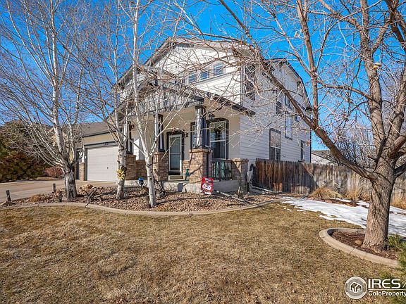 This expansive 2-story home situated on the corner lot of a quiet cul-de-sac in the Pioneer Ridge subdivision has been well maintained with many beautiful updates - new main floor and basement carpet and laminate flooring installed in 2022, upstairs carpet installed 2019. This home immediately welcomes you in with its gorgeous curb appeal including a recently painted exterior (2021) in a modern white and black color palette, and quaint covered front porch. As you enter the home, you're greeted by a large formal dining and lounge area with tons of natural light. The kitchen has new quartz countertops (2022), ample storage, and an informal dining nook that overlooks the backyard. Guests can gather around the kitchen island, relax in the large family room, or make their way outside to the large covered back patio. The backyard features two storage sheds which are accessible through two gates, mature trees, a sprinkler system, concrete curbing, and lush landscaping that is just waiting to show off in the spring. The spacious primary suite is located on the upstairs level of the home and includes a 5-piece bath and a large walk-in closet. Two secondary bedrooms are also on the upper level and are connected by a double vanity bathroom. Laundry is conveniently located on the upper level along with a family room loft (don't miss the wood feature wall!). The finished basement contains the fourth bedroom, a bathroom, an unfinished storage area/utility closet, a nonconforming 5th bedroom or office, plus a large space that can be used for lounging, exercising, etc. The oversized 3-car garage includes an extended bay for a workshop, a 220v outlet, heater, and engine hoist ready I-beam. Situated just minutes from old Johnstown, you will feel the comfort of this small town when you visit the local market, coffee shops, and restaurants. The YMCA is also just minutes down the road. 1-year First American Home Warranty Included!