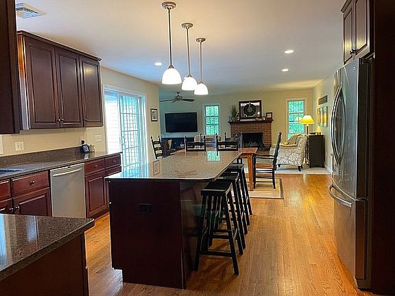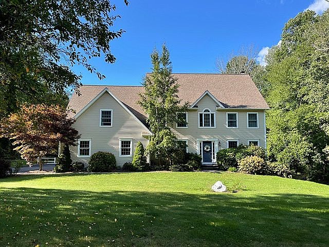 Beautiful, clean, 3 car garage colonial, on 2 acres of land. Very private professionally landscaped lot on a quiet cul de sac. Gorgeous paver patio overlooking large open back yard perfect for entertaining. Kitchen includes stainless steel appliances and granite countertops. Open floor plan with eating area and comfortable family room with wood burning fireplace. Large dining room and office or formal living room space. Upstairs features a spacious master bedroom with a walk in closet and master bath complete with spa tub. 3 more bedrooms are on the second floor, one with a big walk in closet. There is a full sized bathroom with shower and tub and a second floor laundry room with ample counter space and a laundry tub. Easy walk up attic which measures about 2,000 square feet of storage or possible living space. 900 square feet of fully finished, walk-out basement with half bath and bar. Brand new central AC and brand new well pump. This house is move in ready and furniture is negotiable.