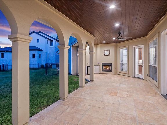 Fantastic country club living in The Hills on corner lot & cul-de-sac. Maned gated community entrance + gated property offers added privacy. Soaring 2 story living with fireplace opens to kitchen & formal dining. Expansive eat-in kitchen provides ample cabinets & counters featuring center island w/cooktop. Large master wing includes a study with wall of built-ins & wood floors. Upstairs game room & tiered floor media room. Covered back patio has fireplace, wet bar & archways. Huge pool with a swim up bar, massive stone deck, and cabana for entertaining guests.