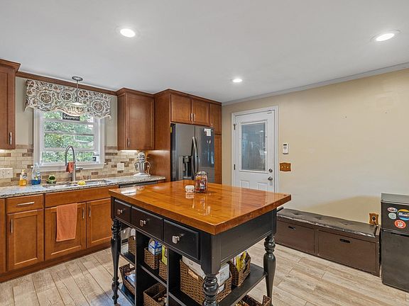 **OFFER DEADLINE SET FOR MONDAY 8/14 at 3pm**The pride of ownership is apparent in this meticulous three-bedroom two bath Garrison style home on .36 acres of level fenced in yard. Impressive curb appeal with beige vinyl siding and brick facade, welcoming walkways and an array of beautiful perennials. The convenience of a 2-car oversized garage allows for effortless entry. The kitchen boasts upgraded shaker style, with exquisite maple wood cabinetry, timeless granite countertops, stainless steel appliances, and a stunning center island. Breakfast bar, eat-in area. The thoughtful floor plan stands out for its seamless transition from room to room, skillfully optimizing functionality. The tasteful upgrades extend beyond the kitchen, elegantly gracing the spacious dining room, inviting living room with custom built-ins and features a pellet stove and beautiful maple flooring. First floor laundry room with an attached 3/4 bathroom. Second floor includes a primary suite complete with a full bath that conveniently connects to the hallway and two additional bedrooms. Attic access for storage. Full basement presents a finished area suitable for a family room, workshop or exercise room. Privacy abounds in the expansive fenced-in level yard, with several patios and firepit. Close to shopping and all amenities. Great commuter location, offering easy access to both north and southbound Route I93. Delayed Showings, Showings to start at the Open House on Saturday August 12th, 12-2pm.