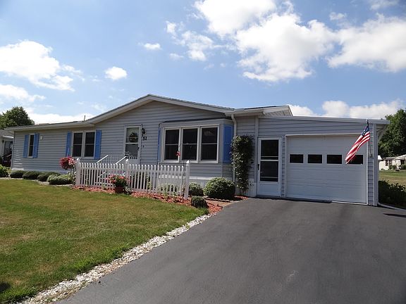 Adult 55 + Community Living at it's Best! Well maintained 2 bedroom, 2 full bath Ranch in nice quiet location! Roof (2007), 10'x35' enclosed deck, skylights, 8'x12' storage shed, 11x12 workshop! Large eat-in kitchen plus dining room, Mature yard & landscaping ! Move in and relax here! Association fees included: water, sewer, lawn mowing, snow removal & refuse pick-up. RGE $45/mo avg (Gas only). just a few minutes drive to Bergen Village.