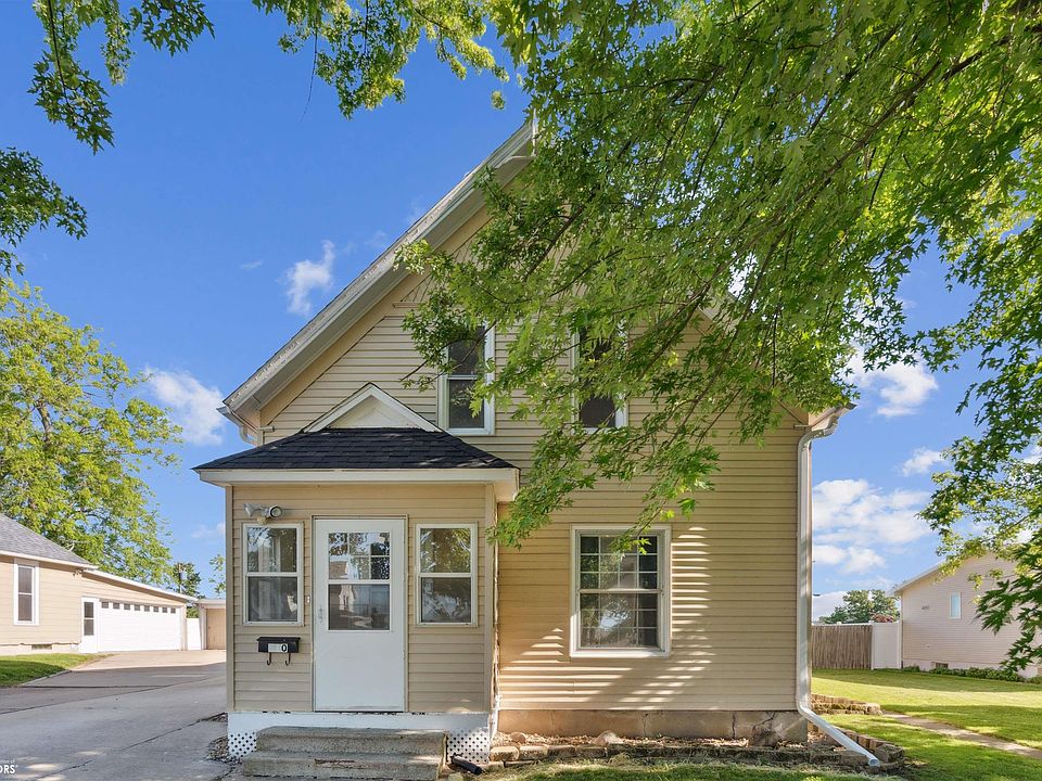Gorgeous, updated story-and-a-half home in Belle Plaine, IA. Located on the outskirts of town with a pretty view of the countryside. This nicely updated home offers a spacious main level including large living room, updated kitchen with new SS appliances, updated bathroom, formal dining room and main floor laundry. New flooring and paint throughout the home, new roof, and a vinyl exterior make this a great move-in ready home. The exterior offers a detached garage and a large fenced (privacy) yard. Call today to schedule a private tour.