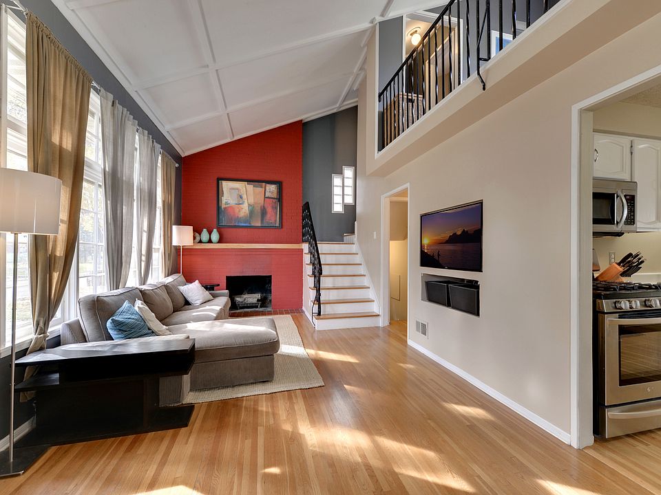 Midcentury Modern. Great open floor plan. Simplistic living at it's finest. Amazing location. Walk to everything you love. Updated kitchen. 20 ft ceilings!