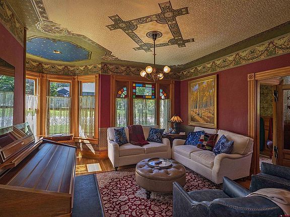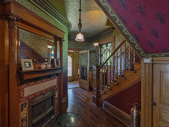 Timeless, Iconic Victorian home in Ouray. This home is photographed more than any other home in Ouray. Built in 1898 this beauty has been immaculately cared for through the years. The home has two formal bedrooms and one flex bedroom with a sauna and murphy bed, a sitting area, an eyebrow deck and two bathrooms on the upper floor. There is a large bedroom with a walk in closet and gorgeous bath on the main level along with the kitchen, dining room, parlor, library, butlers pantry, laundry, side entrance and half a bath. The lower level has a bunk room with four bunk beds and a queen bed along with an adorable kitchen, with red appliances, and a bath. There is a separate entrance in the lowest level. One could make this into an apartment for a care taker. The kitchen has soap stone counter tops, period new appliances, an authentic old farm house sink, and beautiful cabinets with wainscoting doors to match the walls. Two of the baths boast claw foot tubs. Old push button light switches, beautiful hardwood and tile floors, gorgeous original trim, beautiful wallpaper, and antique fixtures are just a few of the many features adorning this home. This home sits on four city lots and is full of perennials, aspen trees, a bocci ball court and a two car detached garage with storage above. The roof was replaced two years ago with a composite product made to look like wood shingles with an 80 year guarantee. The amenities are too many to list. Come see this stunning home for yourself.