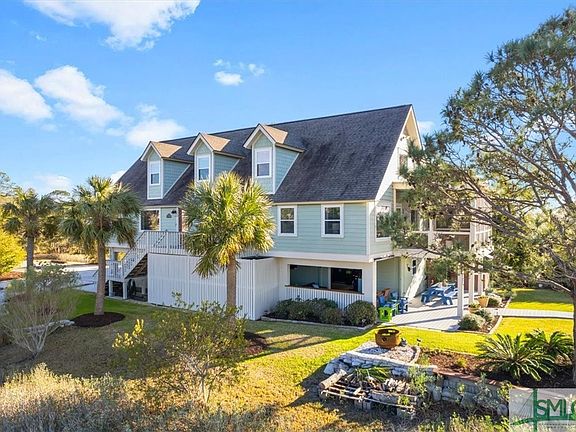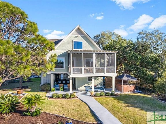CALLING ALL NATURE LOVERS! Perfectly situated on a private, marsh front lot, this Tybee Island home boasts one of the Island's most mesmerizing views of Horse Pen Creek. From the covered dock, enjoy boating, fishing, dolphins swimming by, bird watching, and of course the best view of the Sunset every afternoon! This fantastic home features a great room with vaulted ceilings and brick fireplace. Open to the great room is a well-equipped kitchen, a large center island and dining area that seats 8. The formal dining room features gorgeous tongue and groove ceilings. Enjoy panoramic views from the cozy second den area which leads to the huge screened porch overlooking the creek. The primary suite on the main floor features fantastic views, beautiful ensuite bath and a large walk-in closet. 2 large bedrooms, full bath, and walk-in attic storage complete the second floor of the home. Downstairs is the large garage/workshop, covered seating area, and hot tub. Only 4 blocks to the beach!