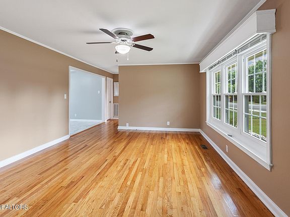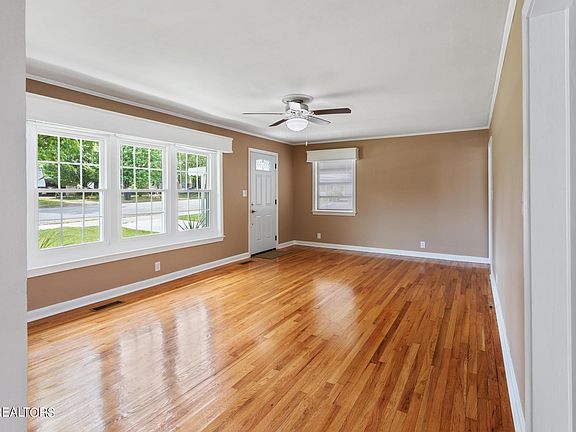 Impressive updates on this brick rancher! The refinished hardwood flooring adds a touch of classic elegance. The new central unit is a great addition for modern comfort and energy efficiency. Home has a new roof and large size gutters for peace of mind and to protect your investment. You will Love the choice of new carpeting in den and waterproof tile in the kitchen - both are stylish and practical. There has been new Blown-in insulation in the attic for energy efficiency and maintaining a comfortable home. Home also has an added second bathroom, enhancing the functionality of the home. Home also has a concrete patio out back and a fenced in yard for added privacy! Overall, a well-maintained and updated property that combines charm with modern amenities.  Photos with furniture virtually staged with AI.
