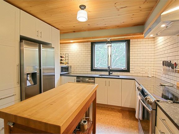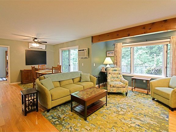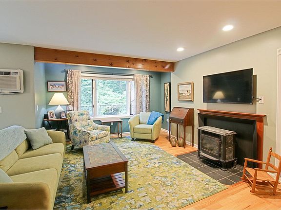 Discover your dream home in this stunning Shelburne Townhome, featuring three levels of meticulously designed living space. Offering 3 bedrooms and 3.5 baths, this residence features a gourmet kitchen with upgraded stainless-steel appliances, granite countertops, tile backsplash, butcher block island, and unique cork floor with decorative river stone border. The kitchen seamlessly opens into a spacious dining and living area highlighted by a cozy gas heat stove. A convenient first-floor office is perfect for remote work. Upstairs, the serene primary bedroom includes a sitting area, ample custom closet space, and upgraded tiled bath. Beautiful hardwood floors and fresh paint throughout enhance this home’s elegant atmosphere. The finished walkout lower level includes a guest bedroom, bathroom with laundry, and large family room with additional gas heat stove. Enjoy year-round comfort with recently installed heat pump mini-splits for air conditioning. Relax on the expansive back deck overlooking the woods or take advantage of nearby amenities including your 1-car garage, wooded rec trails, plus an association swimming pool and tennis/pickleball courts. Just minutes from Shelburne Village, golf, Lake Champlain, and about 15 minutes to downtown Burlington, this private end-unit offers convenience and comfort in one perfect package.