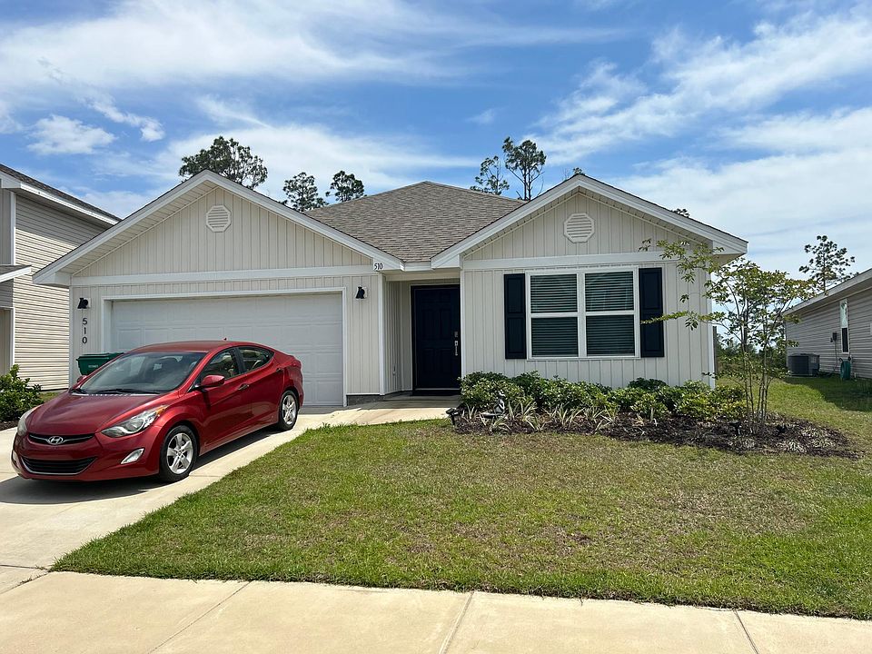 Built in 2021, this 4 bedroom 2 bath home located 5 miles from Tyndall AFB in Bridge Harbor. Open floor concept with split floorplan between master bedroom and three other bedrooms. Stainless steel appliances with walk in pantry and 2 car garage. Carpet in the bedrooms and vinyl plank flooring in the living areas and bathrooms. Privacy fence with views of the bay and a covered patio. This home is located on an easement, which provides additional privacy. The neighborhood features sidewalks, parks and a community pool with full outdoor kitchen and fire pit for nights with the family. Two nice playgrounds close by. Close to Aldi, Winn-Dixie, and Walmart for all your shopping needs. Restaurants and cafes a short drive from the property. Pet deposit fee. All pets must be approved by owner. Tenants will pay all utilities (water and electricity). All cars must be parked in driveway. No long term street parking. 1 year lease with month to month after the first year. Pool code and access will be provided to tenants and a mailbox with key. $25 fee for replacement key to the mailbox. Landscaping will be done by tenant and must be kept up to prevent HOA fines.