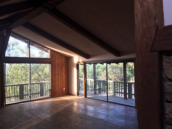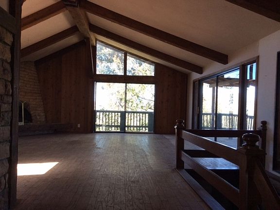 Great Alpine home, rustic feel. Very nice location on an acre lot with Lovely views. Large three bedrooms two baths home, open floor plan, high ceilings with open beams, and beautiful brick fire place in family room. Two detached car garages, and plenty of space for RV parking and more. Unfinished Downstairs Studio. Detached Granny Flat in the back. Needs TLC.
