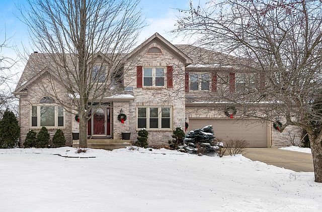 Simply stunning and spacious 5 bedroom, 3.5 bath home on a cul de sac in the highly sought after Mill Race Creek neighborhood. Hard wood greets you as you enter the soaring two story foyer. Anchored on either side of the foyer is a living and dining room with neutral decor, and an open concept layout. The kitchen features white cabinetry, tiled floors, rich granite counters and a cozy breakfast nook with stunning views of the backyard. The spacious family room allows for abundant natural light along with a fireplace. Upstairs, you will find 5 spacious bedrooms, a master with vaulted ceilings and a private bath with oversized soaking tub and tons of closet space. The finished walk out basement is great for additional entertaining space complete with full bath and even has room enough for a home office. recently stained deck off the back with tranquil views of the pond where you can fish the day away. Excellent district 308 schools, convenient location with ponds, walking trails throughout the neighborhood. Near shopping, dining schools, this home is one of a kind! Newer items- roof 2019, HVAC 2015, windows done in 2011. Don't less this one pass you by.