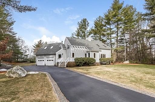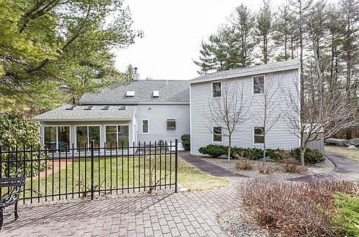 Unique 3-4 bed contemporary cape set on a private .81 acre lot near the Sharon line. As you approach you'll notice the well-manicured grounds leading up to a wonderful front porch & new roof. In the back you'll find a private yard, large patio, & recently resurfaced, fenced tennis court with lighting. This court has unlimited possibilities & has been used as a basketball court, skating rink, for street hockey, and more! Inside you'll fall in love with the open floor plan, large windows, & natural light that floods each room. Family room features cathedral ceilings, skylights, palladium windows, & fireplace. Above the oversized 2 car garage you'll find a 24x24 great room/4th bedroom. Off the living room you'll find the entrance to an enclosed deck with Jacuzzi/hot tub overlooking the backyard. Additional features include a newer heating system & water heater, master suite w/ renovated bath, finished basement, & 1st floor laundry room. Shown by appointment only, call today!