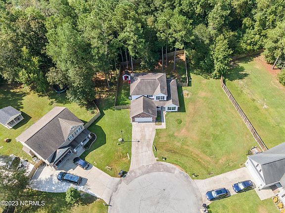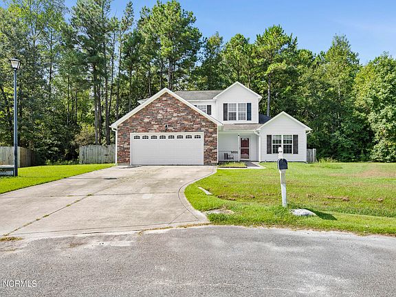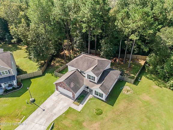 This amazing home has 4 spacious bedrooms, 2 and a half bathrooms and is conveniently located at the end of a cul-de-sac on an oversized lot. First floor main bedroom has a huge walk-in closet with custom built-in shelves, an en suite bathroom with a large soaking tub that is perfect for relaxing. The other 3 bedrooms are upstairs with the second full bathroom in the hallway. The eat-in kitchen and a formal dining area are perfect for entertaining guests. You will find lots of privacy in the fenced in backyard and the back deck is ideal to enjoy beautiful Carolina nights. Do not wait, schedule a showing to see this home located minutes from New River Air Station and Camp Lejeune main gate and Carolina beaches.