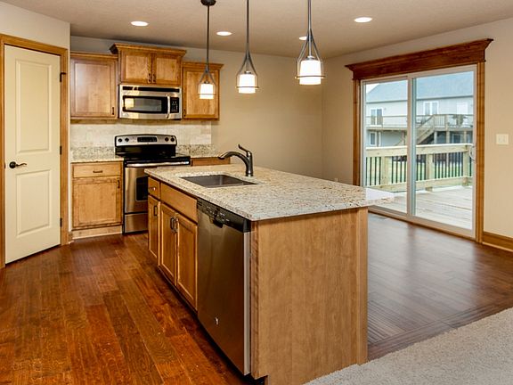 Spacious WALKOUT ranch by KRM Development in wonderful Orchard Hills Location! Over 2,350 Finished Square Feet with finished lower level. Very open and spacious floor plan. Gorgeous kitchen w/ granite countertops, hardwood floors, corner pantry, stylish pendant lighting over island, and stainless steel appliances. Sun filled eat in area with access to good size deck. Master suite includes tray ceiling, walk-in closet, private tiled bathroom w/ granite and dual vanities. Lower level is finished with family room, 4th bedroom and 3/4 bath! Other features: floor to ceiling stone fireplace in great room, tile in baths, 1st floor laundry with built-in cubbies, upgraded garage doors, full sod, 3 car attached garage. 5 year Tax Abatement (ask for details). Ask agent about other plans available to build!