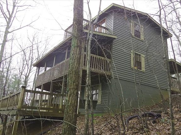 Hidden Away in the gorgeous mountains of E. Gilmer, a place where you can escape, relax and forget the city traffic, noises and leave your cares behind! This lovely, furnished 3BR/2.5BA cabin would be a great vacation rental or your quiet escape from reality! The warm wood interior invites you to come in and make yourself at home. With bedrooms, baths and porches/decks on each floor, there is plenty of room for your own space. The basement boasts a game room with pool table, sitting area and bedroom. See to appreciate! The decks overlook the peaceful mountains and woods. An affordable deal in a nice area on the county maintained road. 5 Acres of joining also available for $33,000