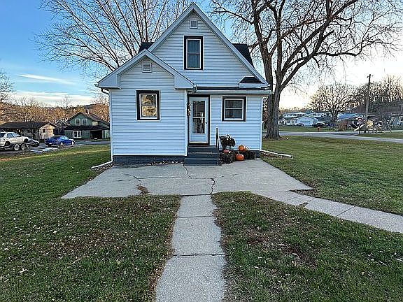 Make this cozy 1 1/2 story house in a quiet, friendly neighborhood your new home! Located on a double lot with 3 bedrooms and 1 bathroom and a spacious living area, it allows for a lot of opportunity to make it your own. The 3 season porch on the front of the home offers beautiful sunrises and sunsets. The kitchen is brand new in 2021. Appliances are newer and furnace, ac, water heater all work great and will come with the house! There is lots of storage space In the basement that will come with 2 large wooden shelves. The 2.5 car garage with full attic space offers more storage as well. Plenty of parking outside of garage with a lean-to attached. With a newly finished private deck behind garage and a fire ring close by, you can gather on nice evenings with family and friends. The front porch deck is also recently finished. Contact me if interested to set up a showing!