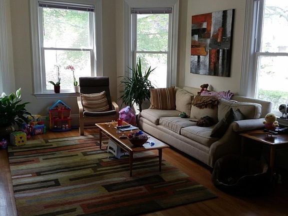 Great, sunny, Victorian apartment is stylishly updated! Amenities include wood floors, new windows, gas heat, central air, in unit laundry and off street parking. New kitchen has beautiful cabinets, stainless steel appliances and newly tiled floor. New bathrooms. Gorgeous entry hall. Wonderful finished lower level for rec room and office and half bath. Easy to show
