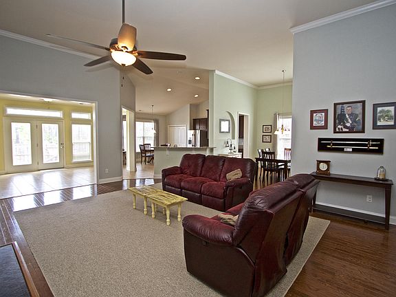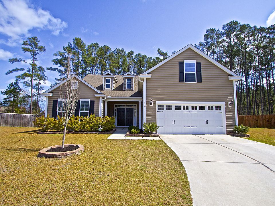 Your dream home is waiting! This is one of the only single-story homes available in Cane Bay Plantation, and it's BETTER THAN NEW: your fence is already there, garage door opener installed, blinds hung, and the landscape is established. Plus - you can close in 30 days instead of waiting six months to build! This home sits on a quarter-acre home site in a cul-de-sac and backs to woods. You will love the soaring ceilings, gleaming hardwoods, and open concept living in this home. From the moment you enter through the double front doors into the wide foyer, you will feel like you have room to move, breathe, relax, and live. The family room is at the center of the home, and flows seamlessly into the separate dining room, spacious eat-in kitchen, and sun room. The kitchen has all the upgradesyou're looking for: granite counters stainless appliances, gas range, center island, breakfast bar, large pantry, and lots of cabinets. Two bedroom share a hall bath toward the front of the house; the owner's suite is separate on the backside of the house. The fourth bedroom could also be used as an office. There's a finished room over the garage that could be a 5th bedroom or makes a nice game room. The backyard is wide with a nice view of pines. It offers a grilling patio and plenty of space for a swing set, trampoline, and garden. Sweetwater is an upscale section of Old Rice Retreat in Cane Bay Plantation, which is one of the fastest growing communities in Berkeley County. Cane Bay is like a village, with its own shopping center that includes a Publix, several restaurants, medical offices and other professional services, plus its own elementary school, middle school, and high school. There are miles and miles of walking/jogging trails throughout Cane Bay, and your new neighborhood has its own swimming pool, play park, and amenity center, perfect for family birthday parties and special events.