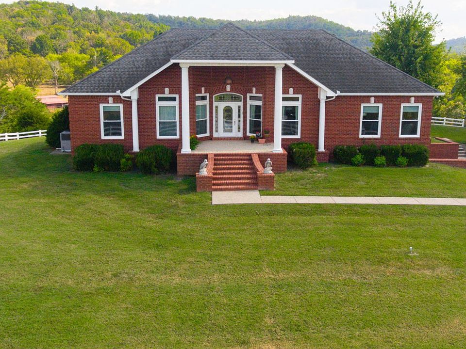 Nestled atop 26+ acres, this custom home is a rural paradise! Perched high on a hill, it offers sweeping views of rolling hills for MILES! Breathtaking sunrises and sunsets from both the grandiose front porch and the back deck, offering year-round enjoyment! This property is a haven for farm enthusiasts! 7 stall horse barn, an area for cows/horses, chicken coop & dog run. There is a small garden area that can easily be expanded! In addition to a walk out basement, there is a huge outbuilding for storage or workshop activities. For those with livestock, this one-of-a-kind farmstead is fenced for cattle or other farm animals. A bonus is the outdoor shooting area, perfect for practicing your marksmanship skills. The land has sections of cleared, timbered, sloping, and flat terrain. Close proximity to Lewisburg and Shelbyville. You'll have the freedom to explore and utilize the property as you desire! Live the rural life, while enjoying modern comforts!