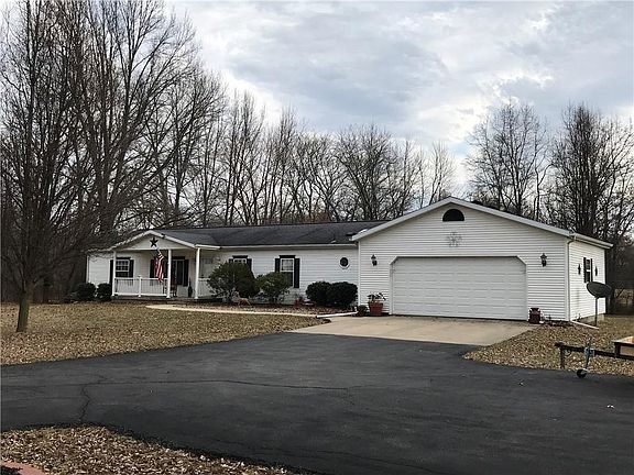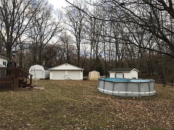 Really lovely country ranch on 1 acre. Block foundation, attached 2 car garage, detached 2 car workshop, 2 sheds plus a garden shed. In addition sellers are planning to leave their above ground pool, trampoline, riding mower and leaf sweeper attachment, and yard roller. Open living room has designated dining area - kitchen also has dining area. Family room with propane fireplace that will heat the entire home if desired. Country fields provide beautiful views in front and back of property.