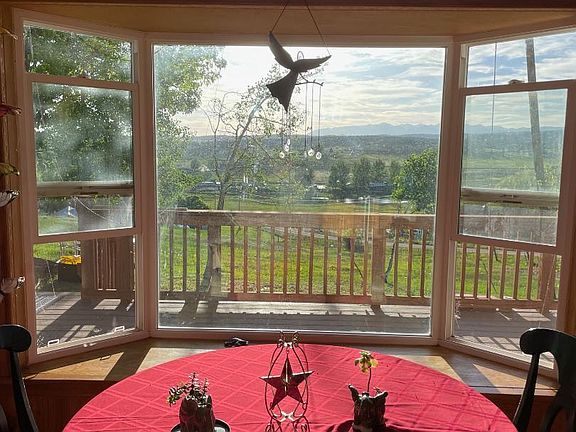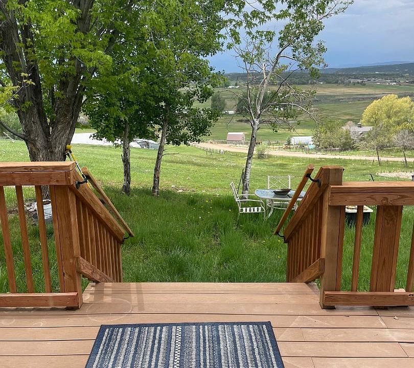 The property has a large barn (for hay storage or horses), chicken coop, and sits as the head irrigation ditch. The true gem of this residence awaits on the deck, where you can indulge in the awe-inspiring mountain views. This view is truly breathtaking.