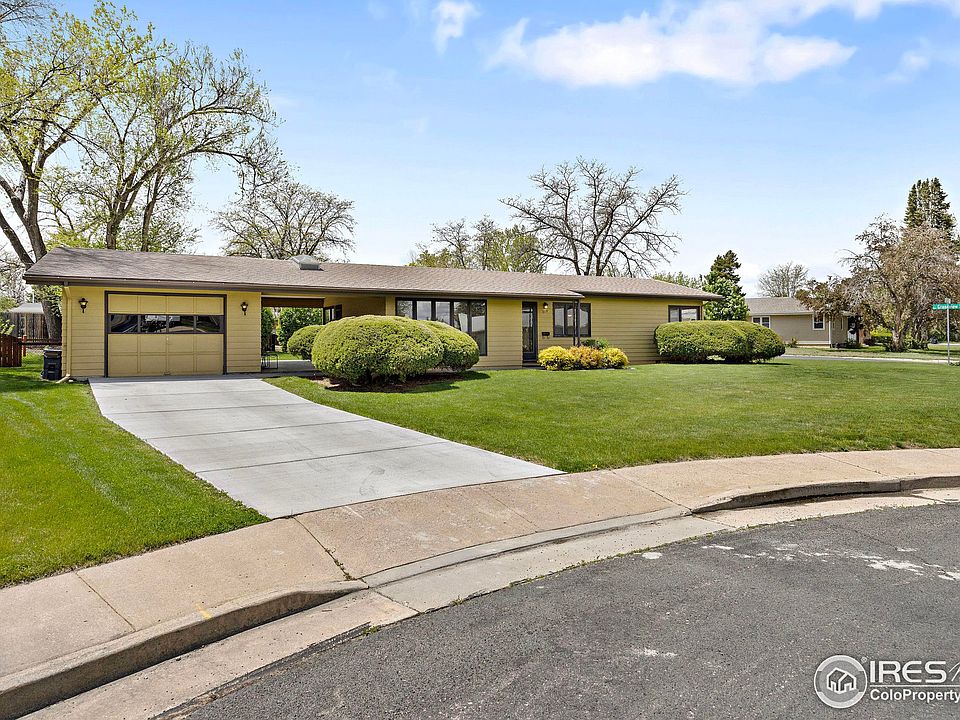 Charming 1950s ranch-style home nestled in a quiet cul de sac. Boasting original wood floors & one-level living, this residence offers effortless accessibility. Step outside to find a covered breezeway and patio connecting the home to an oversized garage, complete with easy attic access for convenient storage. Stay cool this summer with A/C & enjoy the spacious lot, perfect for outdoor activities & entertaining. Located near Lake Loveland, this property offers both tranquility & convenience, making it an ideal place to call home.