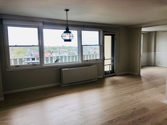 OCEAN VIEWS, A POOL & A PARKING SPACE! Some of the best views in Asbury Park from this stunning 2-bed / 1.5-bath apartment located in Deal Lake Tower. Nicely updated kitchen with an open plan living / dining room lead out to a big balcony overlooking Loch Arbour, Deal Lake & views of the ocean. Brand new white oak floors throughout, plus newly installed custom closets. Spacious master bedroom offers a wall of closets & dedicated bathroom. Second bedroom w/ Murphy bed can be used as bedroom or as an office / additional living. This meticulously maintained building offers a secure lobby area, laundry room, community room & a beautiful heated outdoor pool. Best of all it comes with its own assigned parking space! Good credit & references, plus 1.5 months security required. No smokers. No pet