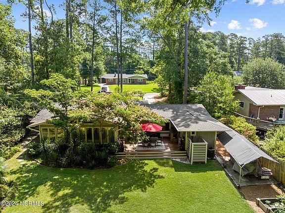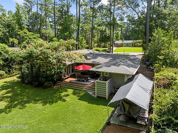 What a rare find! Such an amazing 3 bedroom 2 bath home in the sought after community of Devon Park just mins from Wrightsville Beach. So many upgrades with a one level floor plan sitting on almost a half acre! Roof replaced in 2018. New fridge and electric range with built-in air fryer in 2020. Hvac's replaced between 2020-2021. The master suite addition was done in 2021 and fully permitted. Backyard is open with plenty of space to add a pool like resort. Tons of privacy and fully fenced in. Two sheds with one being fully wired and decked out while currently being used as a gym. Outdoor shower and multiple decks/ lounging areas. Charming little bridge to the back left of the lot. The sunroom has its own hvac and is a fantastic space for multi use. 5 mins away from great restaurants, breweries, grocery stores, parks, walking/biking trails. Enjoy riding bikes to the neighborhood playground or empie park,