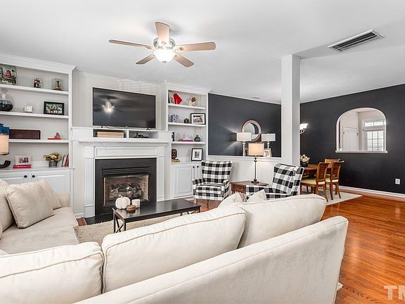 Attractive townhome located in Renaissance Park -- minutes from Downtown Raleigh! Brick front exterior w/ large covered porch. Open living area perfect for entertaining. Engineered hardwood throughout first floor. Gas fireplace & custom built-ins. Kitchen boasts granite counters, sstl appliances & breakfast nook. Owner's suite w/ tray ceiling, walk-in closet, luxurious bathroom w/ garden tub & shower. Garage w/ fenced private patio. NBHD amenities -- clubhouse, pool, gym, playground, v-ball, tennis & more!