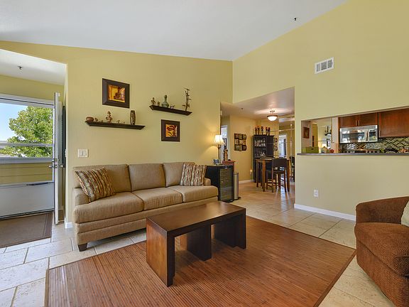 Gorgeous remodel with dual pane windows, six-panel doors, Italian tile floors, and updated lighting. Beautiful kitchen features wood cabinets, corian counter tops with glass tile backs plash, and stainless steel appliances. Master bedroom suite with hardwood floors, his and hers closets, and dual vanities in master bath. Full size washer & dryer in unit. Sunny balcony overlooking pool, spa, club house, and exercise room. One car detached garage. Great commute location, close to shopping and restaurants!