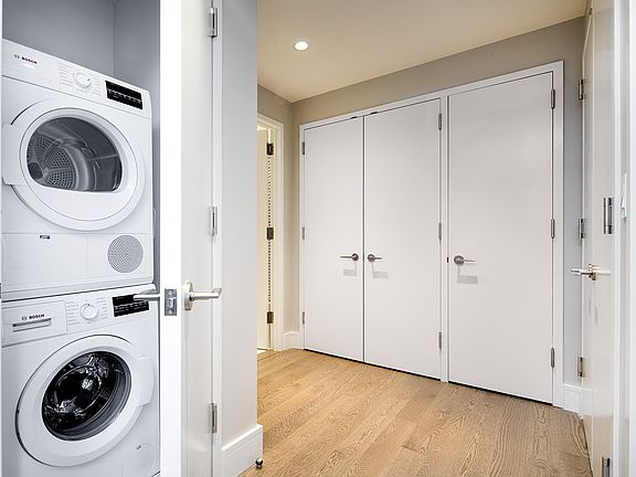 Residence 315 features oversized windows, a dressing area, and an in-unit Bosch washer/dryer. The huge open kitchen is outfitted with Miele and Bosch appliances, Cosentino Silestone Quartz countertops and backsplash, and unique wood and glass cabinets with gunmetal pulls. Relax in your Porcelanosa tiled bathroom with Kohler and Waterworks fixtures. This apartment is finished with hardwood white oak flooring. GO BIG at EVGB, contemporary living in the heart of the East Village, New York's most exciting neighborhood. Stylish residences capture the spirit of the surrounding blocks with modern finishes and fixtures. Unwind against the Glorious Backdrop of Lower Manhattan on the spectacular 19,000 square foot roof deck, complete with fire pits, pergolas, and lounging areas. Downstairs, entertaining spaces including a residents' lounge, fitness center, and pool make the entire building feel like home. GO BEYOND EVGB and explore the legendary East Village, a true New York original. Tap into the endless energy that fuels the downtown art, food, music, and fashion scenes. Discover a vibrant community of chic shops and boutiques, restaurants, bars, cafes, and classes. When it's time to work or get away, you're conveniently located with easy access to transportation, including the subway, SBS and crosstown bus lines and the FDR Drive. Groovy Bars, Greasy Burgers, Gourmet Bites, Graceful Boutiques, and (most importantly) Great Beginnings.