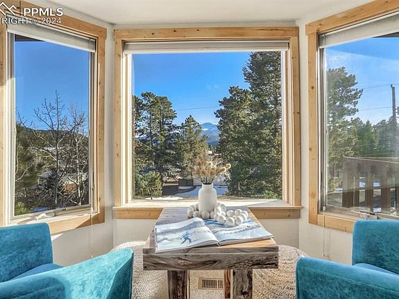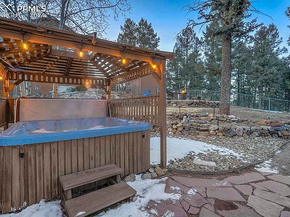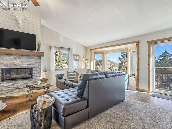 Welcome to your dream mountain retreat! This stunning 4-bedroom, 2-bath home in Woodland Park combines panoramic mountain views, spacious living, and an outdoor haven with direct views of Pikes Peak. The home features two levels of living space designed for comfort and natural beauty. The main floor boasts an open-concept layout with a vaulted ceiling, cozy gas fireplace (installed 3/22), and new picture windows (Nex-Gen, Marvin Infinity Fiberglass, installed 3/23) framing breathtaking mountain scenery. The seamless flow between the living, dining, and kitchen areas makes it perfect for entertaining or relaxing, with easy access to the deck for outdoor dining and stargazing. The fully fenced backyard is a retreat, complete with a hot tub gazebo, fire pit area, and deck for grilling. The hot tub is professionally maintained, with new parts recently installed. Upstairs, the primary suite offers incredible mountain views, a private bath, and ample closet space, while the second bedroom is equally inviting. The lower level includes two additional bedrooms, a full bath, and a spacious living area with walk-out access to the front patio. Recent updates include a new furnace (01/22) and roof (10/23, Owens Corning Class A fire-rated shingles, 130 mph wind rated, & class 3 impact resistant.). With its breathtaking views, outdoor amenities, and proximity to nature and nearby cities, this Woodland Park home offers the perfect balance of mountain living and modern convenience. Don’t miss out!