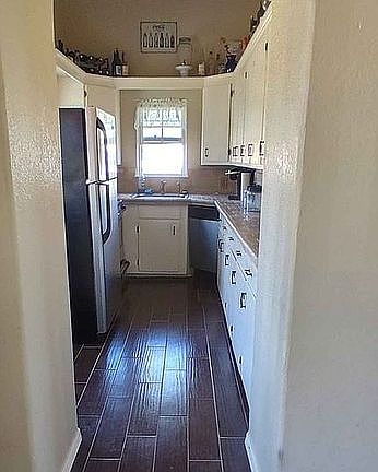 Cute remodeled home. Two bedroom, one bath with two car detached garage, fenced in yard. New roof in 2021. Quiet neighborhood, close to town and school.