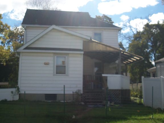 Very nice 2 bedroom home redecorated and ready to be moved into. This home features good size living and dining rooms with huge kitchen and all appliances stay. Other room on main floor could be converted into extra bedroom. Hardwood floors in living and dining rooms. Upstairs include 2 nice size bedrooms. Very clean basement with half bath and new water heater will be installed. Covered enclosed porch in front and covered deck in back . House has vinyl siding with garage located in the back off alley.