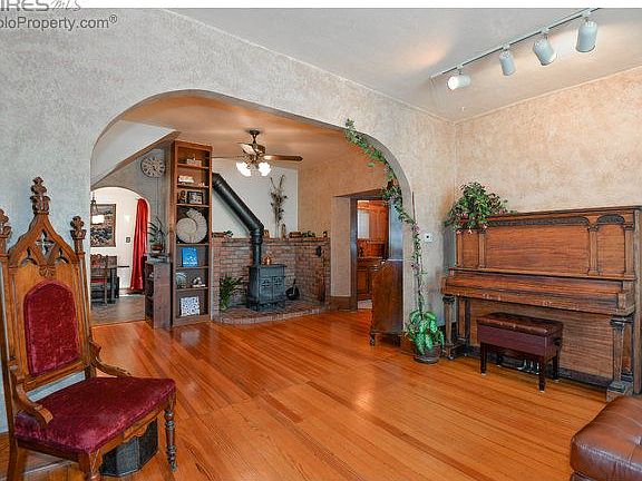 Victorian style 2 story on generous lot. Tiled entryway, original hardwood floors crafted of hard pine. Attractive wood burning stove, kitchen with vaulted ceiling, skylight and slab granite countertops. Laundry area w/nice sized pantry. Master suite on main with dual closets & built-in dresser. Full bath w/beautiful vanity. Versatile upstairs area. Lots of storage on second level. High quality backyard, covered back porch & one car detached garage. Basement w/good ceiling height. Pre-inspected.