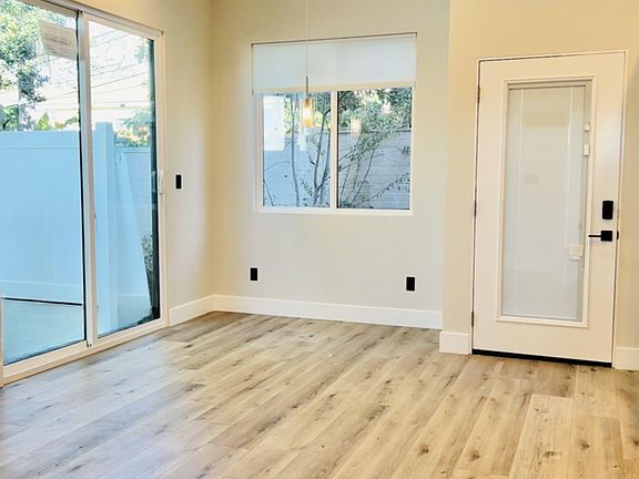 Newly Built ADU. Private Back unit with high ceilings. New Construction, everything is new. Come by to see this beautiful home and make it your own. From new luxury vinyl plank floors in the whole unit, to beautifully tiled kitchen splash area with granite countertops, white kitchen cabinets, beautifully designed tiled large bathroom. New windows, 2 skylights, very bright unit with sliding doors leading from dining area into a private patio area. New dishwasher, stove with exhaust hood, Fridge, new washer and dryer in colorful green. AC/ Heating split system in bedroom and living room. Open to view daily just contact us with a desired time and date. Please contact Djordjiana to view. Owner pays for water, trash and gardening. Tenant pays gas and electric.