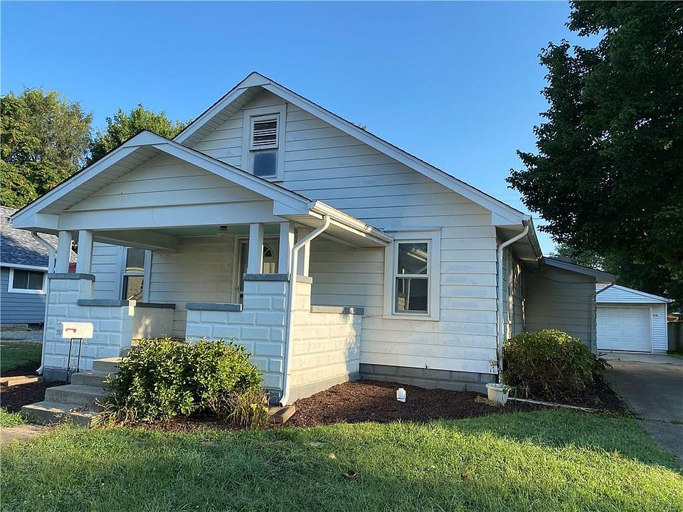 If the walls could talk! This 1900 2 bedroom, 1 bath bungalow offers a unique floor plan with a formal dining room with a built in cabinet (currently used as a bedroom), large kitchen with walk in pantry, sunroom/ laundry room and a 2 car detached garage. Updates include remodeled bathroom, new light fixtures, new plumbing inside and out, updated electrical with 200amp, new HVAC all within the last 2 years. Good things do come in small packages...