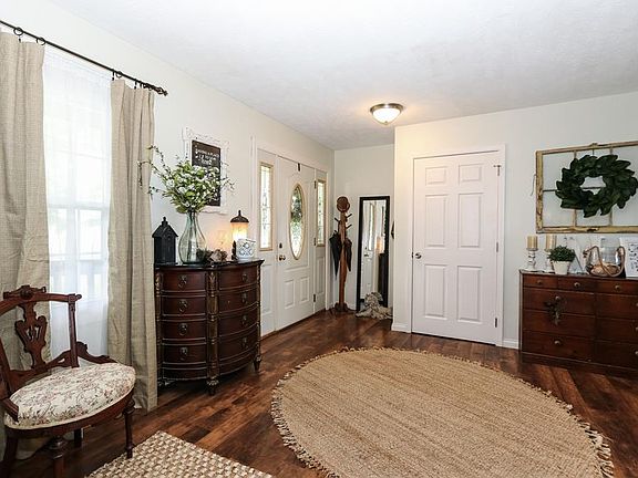 Beautiful updated ranch situated on a gorgeous 5 acres with mature trees. Enjoy the peaceful surroundings with 2 decks for entertaining. Updated kitchen w/granite & stainless appliances, 2 full baths, partially finished basement w/ a 4th guest bedroom & walkout basement & tobacco barn. Cistern still in use for irrigation of plants.