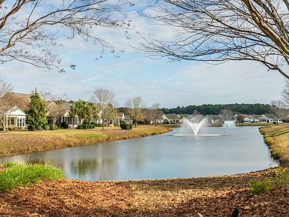 Welcome to this beautifully maintained Abbeyville model in Del Webb Cane Bay, set on a picturesque homesite with peaceful lagoon views. Offering low-maintenance living in one of Charleston's premier active-adult communities.This move-in-ready home features 2 bedrooms and 2 bathrooms. A defined foyer with hardwood floors and a graceful archway creates a warm welcome. Just off the entry, you'll find a privately located guest bedroom and full bath, as well as a versatile office/den enclosed by elegant glass French doors and a bright sunroom. The heart of the home is the open-concept living area, designed for both everyday comfort and seamless entertaining.The kitchen boasts Maple cabinetry, granite countertops, a tile backsplash, under-cabinet lighting, stainless steel appliances, and a center island highlighted by pendant lighting. The adjacent dining area flows effortlessly into the sunroom, where beautiful sunrise views over the pond create the perfect start to every morning, and lead to the outdoor patio where tranquil pond views set the scene for relaxation. Hardwood flooring extends throughout the main living spaces, including the sunroom and office/den, while tile enhances the bathrooms and laundry room. Conveniently positioned near the primary suite, the laundry room offers plenty of additional storage. Quietly tucked at the back of the home, the primary bedroom showcases a tray ceiling, beautiful lagoon views, dual granite vanities, a walk-in tile shower, and an oversized walk-in closet. Additional features include a built-in drop zone and extra storage closet leading to the two-car garage. A brand-new 2025 HVAC system adds peace of mind and long-term comfort. Experience comfort, convenience, and scenic beauty in this exceptional Del Webb Cane Bay home. Schedule your showing today!