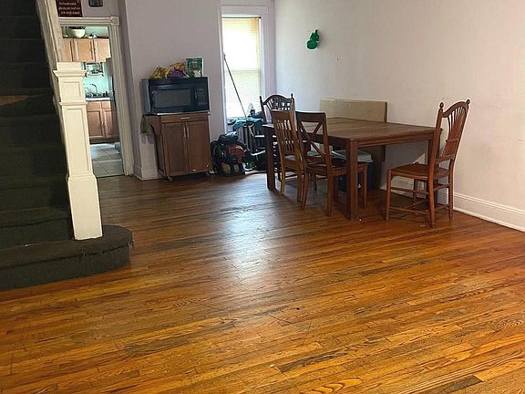 Great opportunity for investment or main residence for this 3 story row with Detached 1-car garage. Nice front porch, very spacious living & dining rooms with hardwood flooring, eat-in kitchen plus shed. 3 bedrooms and bath on 2nd floor. Finished walk-up Attic. Basement with storage room. 2yr old roof. Property is selling as-is. Purchaser is responsible for CO. Fenced yard.