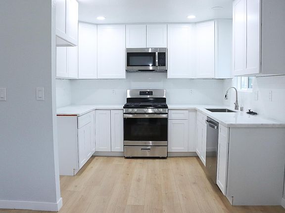 Welcome to 510 Exchange Street. Nestled on a corner lot, this 3bed/2full bath home is move-in ready! Walk into living room/dining room area with vaulted ceilings, cozy fireplace, and recessed lighting. The upgraded kitchen boasts white shaker cabinets, clean quartz countertops, and stainless steel appliances. The primary en-suite bedroom has vaulted ceiling, access to backyard, double sink vanity, shower and tub, and walk-in closet. Down the hall are useful cabinets with beautiful quartz counter, 2 bedrooms with ceiling fans, and full bathroom. Inside area closet for laundry hookups. The backyard has a spacious side yard and cement area for patio furniture. Extended driveway. Brand new roof and gutter. New flooring throughout. New exterior and interior paint. Near schools, trails, and freeway.