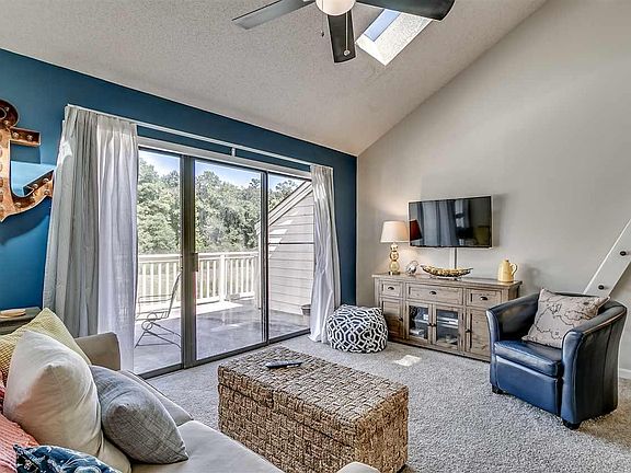 A charming light and bright condo that is perfect for your coastal getaway! Completely turn key and nicely appointed with all furnishings down to the linens, dishes, pots and pans. The condo lives large with vaulted ceilings, a queen size loft bed and private bedroom, dining nook, stack washer and dryer, custom Elfa closet system, Nest thermostat, along with newer appliances! Two porches, the front balcony overlooks a beautiful lake and foot bridge to the community pool and grilling station. The back deck overlooks green space and can be accessed from the condo or the outdoor steps for convenience. This condo was listed for short term rentals through airbnb and has also been rented long term - always in demand!