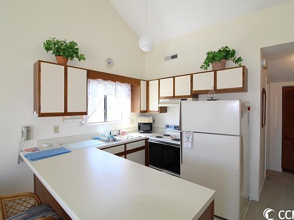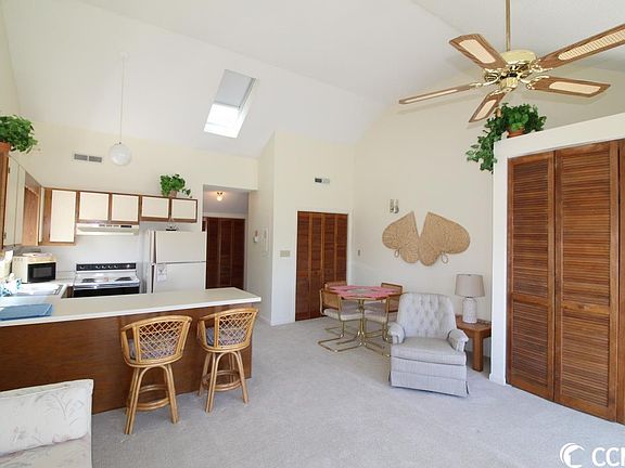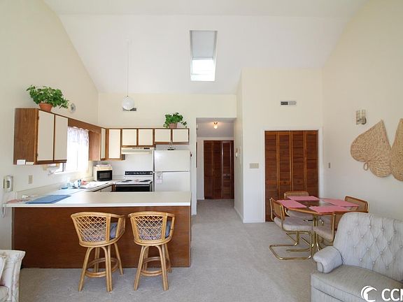 This top floor, end unit, studio condominium at Island Green enjoys a pond view from the back porch. New carpet installed in 2021. New water heater installed in 2020. Sleeping accommodations include Murphy bed & pull-out sleeper sofa. This unit is sold furnished and the current owners use the property as a vacation home, never rented. The condominiums at Island Green can serve as a primary residence, vacation getaway or to generate rental income from both vacation rentals and annual rentals. HOA dues include water/sewer, basic cable and internet. Island Green is conveniently close to all the Coastal Carolinas has to offer, without being in the middle of all the traffic and crowds.