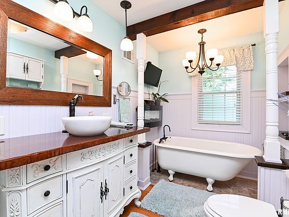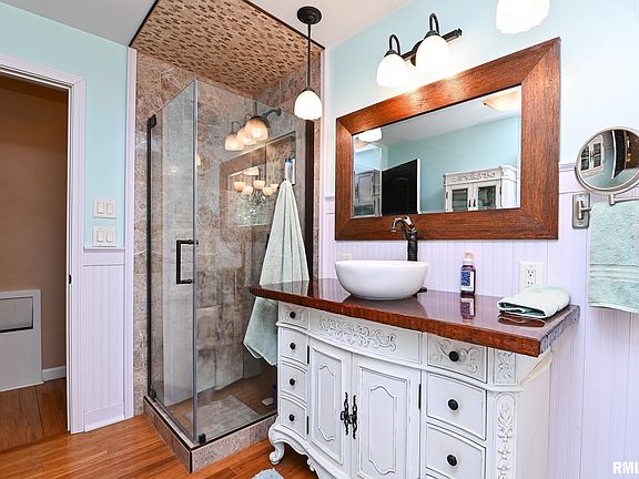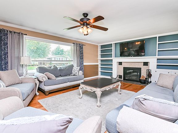 Welcome to this beautifully updated 4-bedroom, 2-bath home filled with modern features and charm. The kitchen boasts an eat-in design with abundant cabinetry, while the spacious living area offers a cozy wood-burning fireplace and sleek wood flooring with neutral tones. The finished basement adds incredible living space, complete with a gas fireplace and convenient walk-out access. Step outside to an entertainer’s dream backyard featuring a pergola over the patio, a 21’ above-ground pool with a large deck surround, and two sheds—including a 14x24 “man cave” shed with electric, heat, A/C, and cable. With 4 bedrooms all on the main level (one perfect for a home office), this home combines functionality and comfort