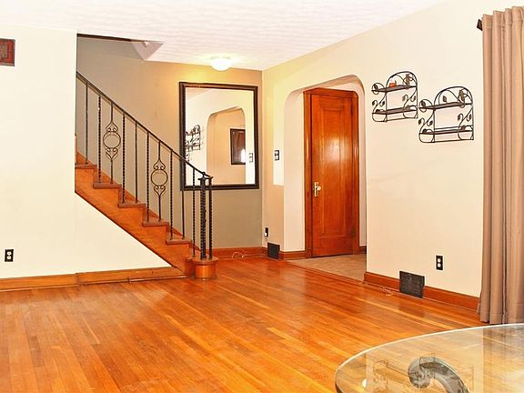 This all brick and stone, 3 bedrooms, 1.5 baths home flirts with everything but your pocketbook. It's located in a neighborhood where neat homes and yards reflecting community pride is the norm. A ceramic floored entry foyer with convenient storage closet warmly greets you before being led into a marvelously expansive living room. This cheerful center for everyday family living is highlighted by the same real red oak polished hardwood floors and old world crafted woodwork seen throughout the house. There's a cozy stone gas fireplace with oak mantle and a unique wrought iron railed stairway to second floor. A panoramic picture window gently splashes the room with sunshine and brings the beauty of outside to your fireside. Next a traditional dining room enriches contemporary entertaining and is serviced by a modernized kitchen with new 12" ceramic tile flooring, new counter-tops, refurbished cabinetry, new sink and fixtures, and brand new stainless steel appliances. A convenient ceramic tiled laundry room is off the kitchen equipped with newer washer and dryer. Upstairs you'll find three big bedrooms (one of which is a dormitory sized 11' x 26') and a totally new and updated bath complete with new sink, bath surround and ceramic tiled floor. There is also a half bath in the basement. The oversized 1 car garage comes complete with a new garage door. Now is the time to investigate one of the finest home values in the area. Call and let us tell you about it.