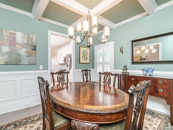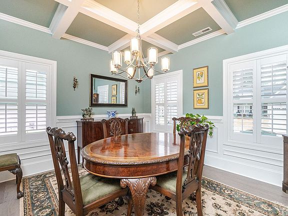 Better than new, 4 bedroom home with 1st floor primary bedroom. Gorgeous custom plantation shutters throughout this beautiful home! Kitchen has granite countertops with angled breakfast bar that is also open to the breakfast room, custom cabinets with crown, ss appliances (refrigerator conveys with this home) and tile backsplash. Coffered ceiling in spacious dining room captures guests' attention as soon as they enter this home. Primary bedroom features tray ceiling & luxury master bath.