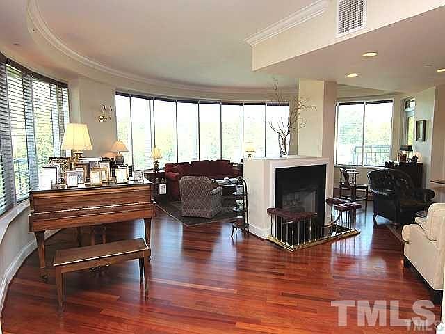One of a kind floorplan with walls of windows. Very generous room sizes. Two living areas(a living area & a tv area) divided by a double sided fireplace with gas logs. Large dining area. Foyer. Two covered porches. Large master suite with very spacious walk-in closet. Two and a half baths. 2 in wood blinds thruout. Beautiful, just refinished brazilian cherry flooring and tile flooring thruout, no carpet. 3M window film on all ext glass. Contact listing agent for exciting changes coming to 510!!