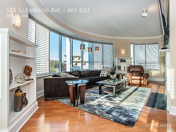 This 2 bedroom 2 1/2 bath Condo is on the 6th floor of 510 Glenwood Ave. This gorgeous home has an amazing views from the living room. There is a large office in addition to two porches, and two bedrooms. The spacious master suite has a huge walk-in closet and bathroom. The kitchen comes with stainless steel appliances and granite counter tops. Included in rent is washer/ dryer, microwave, stove, dishwasher, and wine fridge. One parking spot provided with unit, any additional parking available for $100 a month. Offered with a minimum of one year lease. No cats, small dogs only. Community Pool Garage Parking #12 Gym